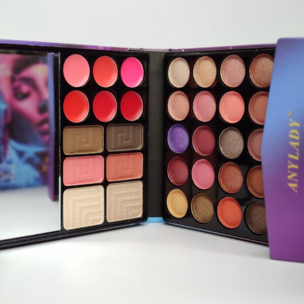 4 رنگ سایه ابرو و رژگونه ، 9 رنگ شایه مات ،2 رنگ سایه ابرو ،20 رنگ سایه،02 رنگ هایلایتر ،6 رنگ رژلب