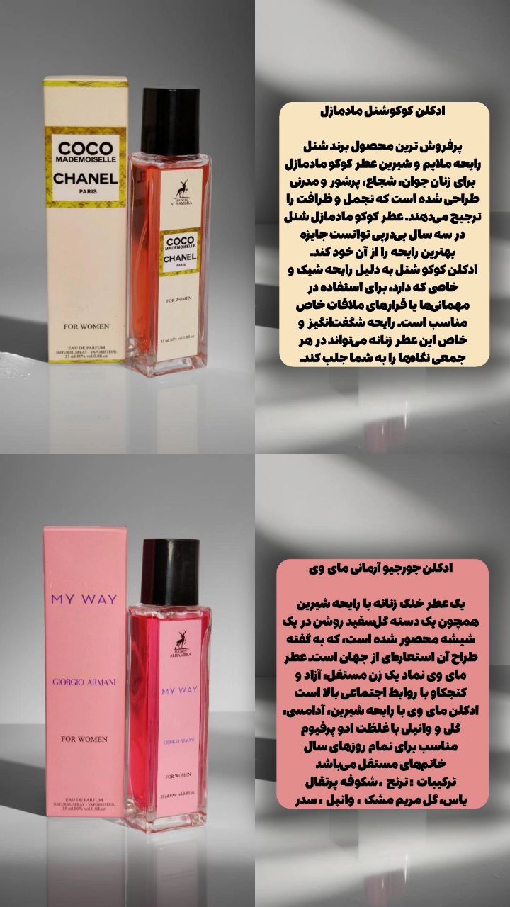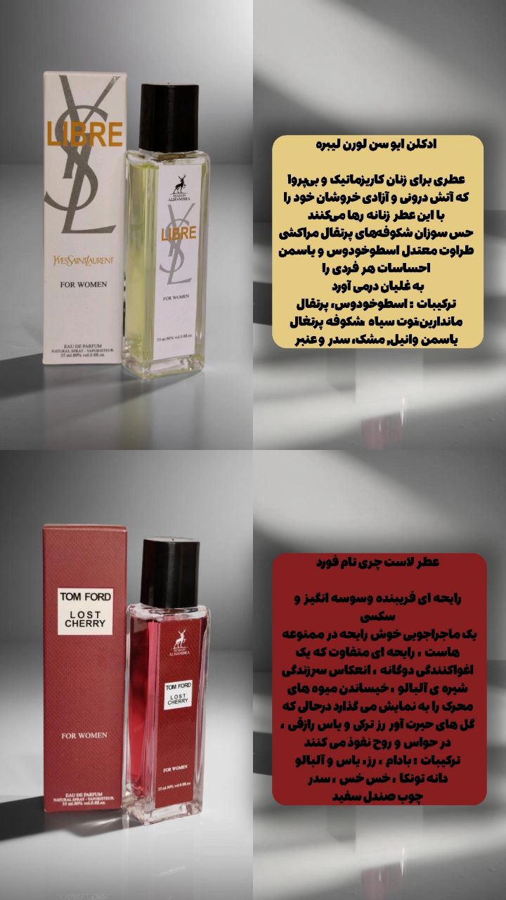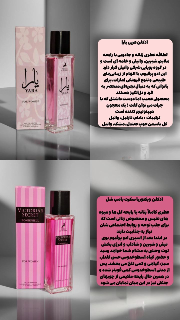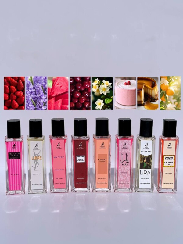 اسد, اکلت, ایوسن لورن لیبره, جنیفر استیل, حیاتی, کازاموراتی لیرا, کوروش, کوکوشنل, گوچی فلورا, لاست چری, مای وی, مگاماره, نارسیس, ویکتوریا سکرت بامب شل, یارا