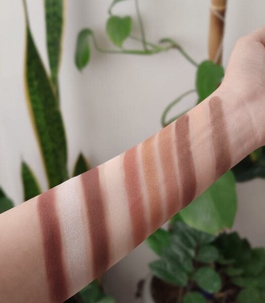 این پالت از تناژ رنگ های کرم روشن تا قهوه ای تیره را در خود جای داده است به همراه دو رنگ هايلايتر.