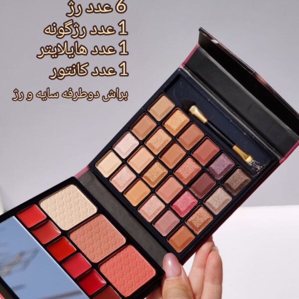 دارای : ۶ رنگ رژلب – ۱ رنگ هایلایتر – ۲۴ رنگ سایه