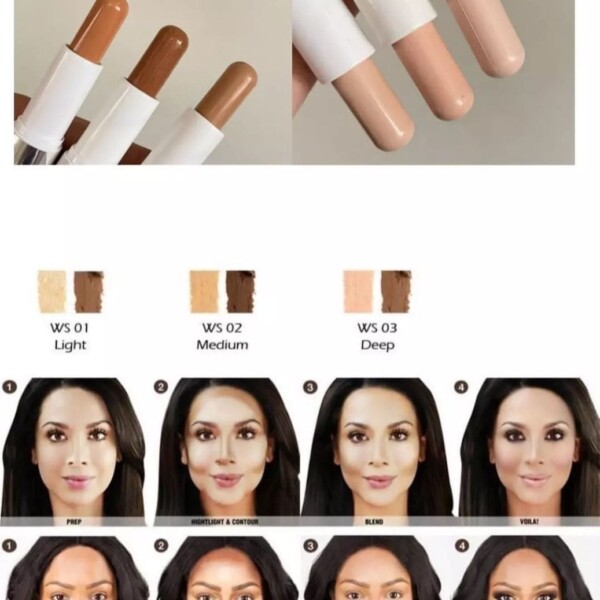 در ۳ طیف رنگی کانتور برای فرم دادن به صورتتون استفاده میشه یعنی شما با این روش میتونید بینیتون و کوچیکتر نشون بدید لبتون و حجیم تر بنظر برسونید گونه و برجسته کنید و فکتون و زاویه بدید کانسیلر هم برای زیبایی و مکمل کانتوره. نوک بینی.چونه.بالای لب. گوشه چشم. بالای گونه . پیشونی زده میشه همینطور برای رفع سیاهی و کبودی زیر چشم استفاده میشه کانتور کانسیلرای استیکی خیلی به صرفه هستن هم قیمتشون مناسبه هم شما دو محصول وباهم دارید هم استفاده ازش راحته هم دیر تموم میشه ديگه چي از اين بهتر ویدیو اموزششم براتون گذاشتم اسلايد بعد رو ببينيد